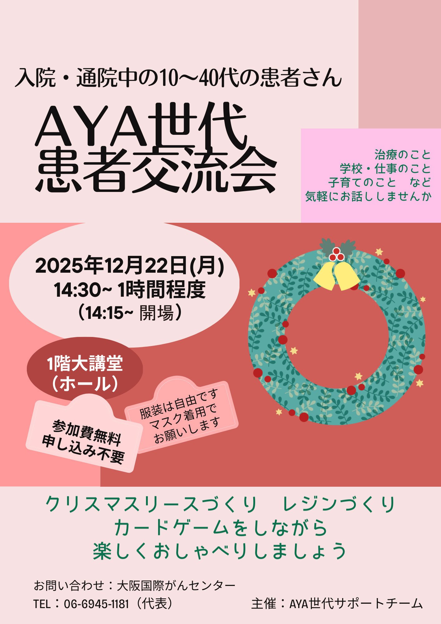 12月22日(月)AYA世代患者交流会 開催のお知らせ