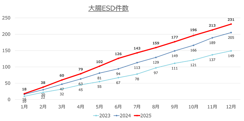 - ・内視鏡的治療(ESD)数:大腸腫瘍 231病変、直腸腫瘍 86病変
