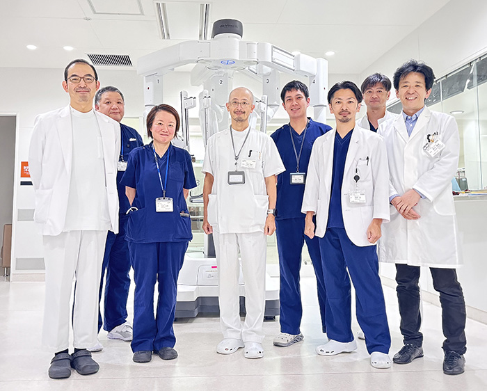 2023年9月1日より、がんロボット手術センターを新設いたしました。このセンターは、皆さまにがんに対するロボット手術についてより詳しくご理解いただき、当センターでの治療を安心して受けていただけるようにすることを目的としています。そのため、ロボット手術を行う各診療科、麻酔科、看護師、臨床工学技士、その他の医療スタッフとの連携を強化し、よりスピーディーかつ安全な手術を提供してまいります。