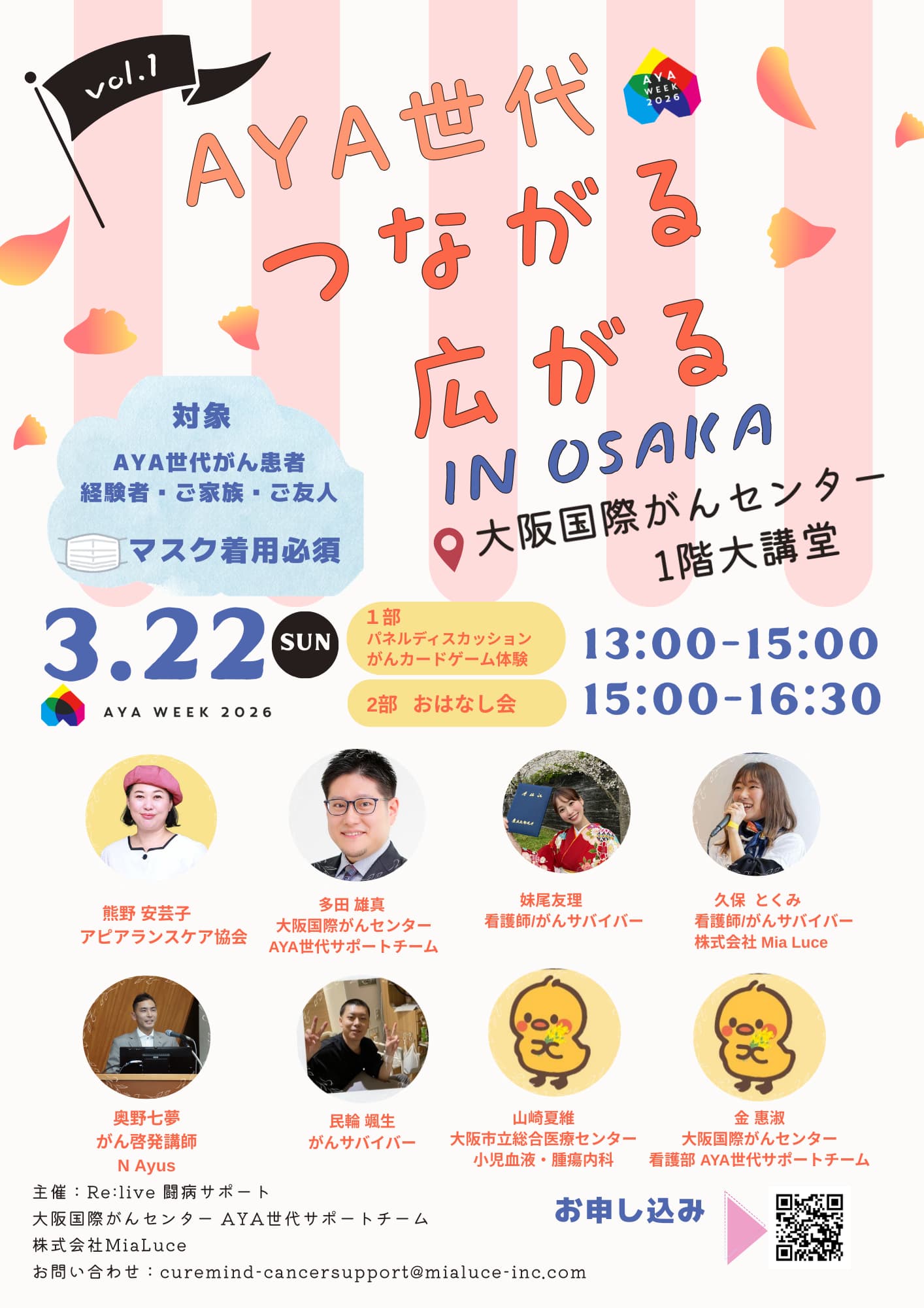 対象:AYA世代がん患者・経験者、ご家族・ご友人 ※マスク着用必須