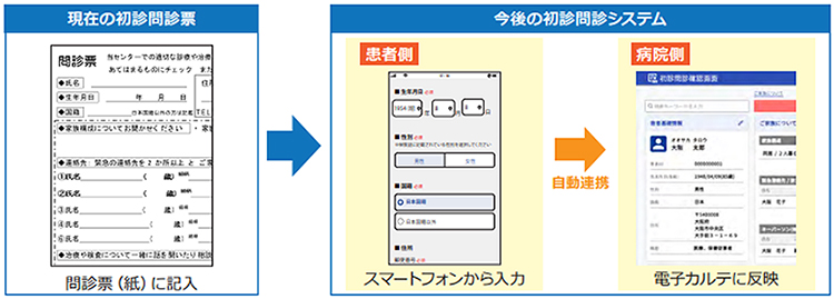 現在、当センターでは初診時に紙の問診票とアレルギー自己申告票を紹介元で入手して、記入していただいておりますが、紹介元の医療機関より受け取られた二次元コードをもとに、ご自宅でスマートフォンやパソコンからアプリに接続のうえ問診票の内容をご入力いただくシステムの運用を開始いたしました。